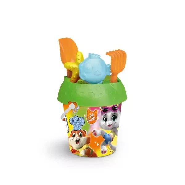 Wiaderko ozdobione barwnym motywem kotów znanych z popularnej kreskówki, co na pewno przyciągnie uwagę najmłodszych. Pokrywka na wiaderko, która posiada sito i dwa miejsca na łopatkę i grabki. Dwie formy do tworzenia kształtów w piasku. Łopatka i grabki, niezbędne do budowania zamków i innych konstrukcji.Zabawka z wysokiej półki w dostępnej cenie od Tupiko
