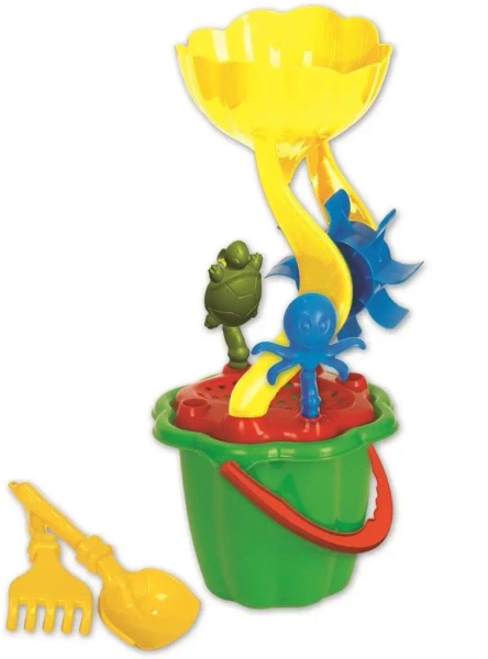 Nasz zestaw piaskowy, składający się z młynka, średniego wiaderka, foremek w kształcie zwierzątek morskich oraz grabek i łopatki, to doskonałe narzędzie dla rozwoju kreatywności u najmłodszych. Pozwól swojemu dziecku odkryć, jak wiele fantastycznych rzeczy może stworzyć z samym piaskiem!