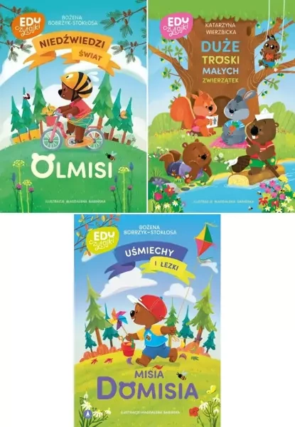 Ile promyczków i słonych kropelek wypełni misiowy dzień? Zmężniał nam ten mały misio – pa, pa, żłobku! Serca rodziców i siostrzyczki Olmisi przepełnia miłość i duma. Domiś wciąż wyciąga łapki po nieznane, lecz zawsze przy wsparciu niedźwiedziej rodzinki. Dlaczego warto być wytrwałym jak strażak Samiś? Co łączy misiowizor z powiedzeniem: „co za dużo, to niezdrowo”? I czy Wróżek Sikmiś każdego odwiedza w tym samym czasie? Nie warto się troskać – warto się troszczyć, by troski migiem znikały. Educzytajki prowadzą dziecko przez to, co bliskie, ważne i trudne, otulając ciepłem bajek i matczyną czułością. Seria, która pokazuje, uspokaja, tłumaczy i podpowiada.