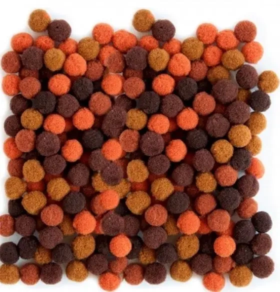 Pompony w tonacji brązowej, o średnicy 10mm. Zestaw zawiera 100 sztuk.