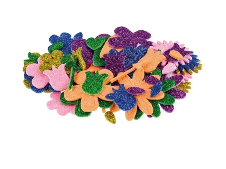 Naklejki z pianki z brokat kwiatki i figury 66 szt