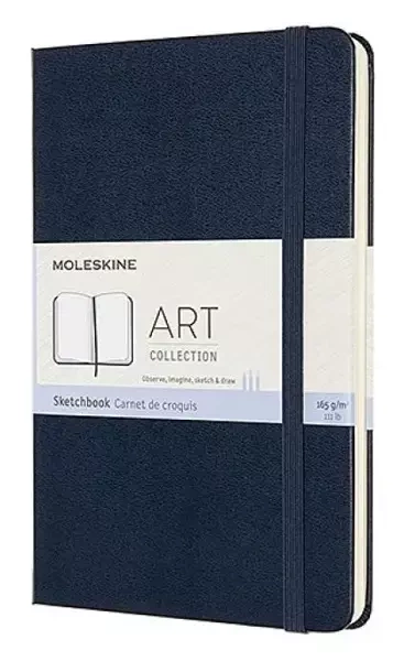 Szkicownik Moleskine M w szafirowym kolorze (wymiary 11,5x18 cm) z twardą oprawą i 88 stronami