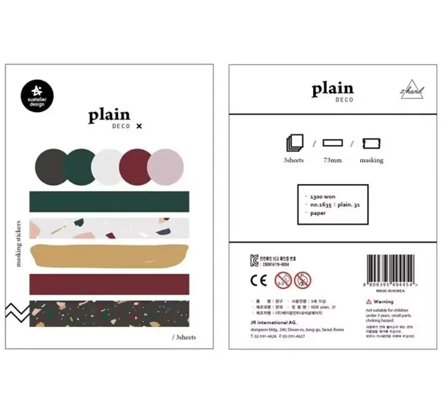 Przedstawiamy produkty z linii Suatelier Plain: naklejki Znaczniki #31 Color o wymiarach 73 mm (w zestawie 3 arkusze). Te minimalistycznie wydane znaczki to poręczne dodatki, które znakomicie odnajdą się jako dekoracje dla notatników, kalendarzy, telefonów komórkowych oraz innych przedmiotów.