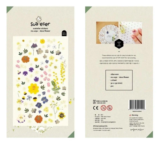 Niezwykle estetyczne i unikalne naklejki Deco Kwietne zaprojektowane zostały przez koreańską markę Suatelier. Te samoprzylepne naklejki mogą posłużyć do dekorowania najróżniejszych przedmiotów - od notesów, przez kalendarze i planery, aż po telefony czy kartki. Można je także z powodzeniem stosować do ozdabiania paznokci, pamiętając jednak, aby pokryć je na końcu bezbarwnym lakierem.