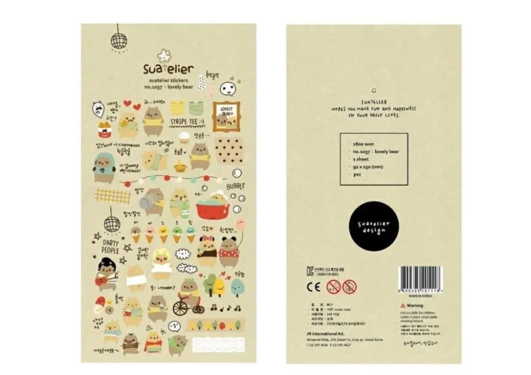Ozdobne naklejki o tematyce zwierzęcej i misiach od Suatelier - koreańskiego producenta