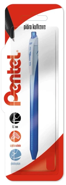 Słynące z niezawodności pióro kulkowe o średnicy 0,7 mm zawiera specjalny tusz żelowy EnerGel. Wyróżnia się on niezrównaną lekkością i płynnością pisania, co sprawia niesamowite wrażenie podczas użycia. Produkt dostępny jest w kolorze niebieskim. W opakowaniu blister znajduje się jedna sztuka pióra.