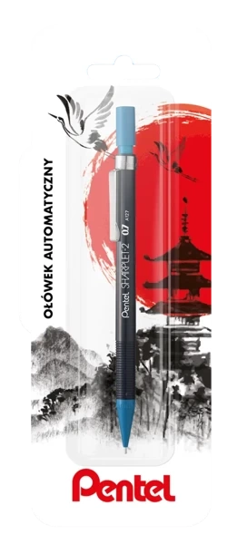 Ołówek o pojemności 0,7 mm, cieszący się ogromną populanością. Wykonany na wzór specjalistycznych ołówków kreślarskich. Klips do mocowania do kieszeni czy zeszytu, może być przesuwany w górę, dół lub zupełnie zdjęty, w zależności od wymagań użytkownika. Obudowa ołówka utrzymana jest w kolorze czarnym, natomiast system przyciskowy jest w niebieskim odcieniu. Produkt sprzedawany w formacie x 1 sztuka, zapakowany w blister.
