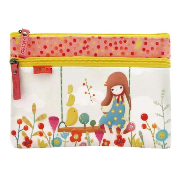 Saszetka płaska Kori Kumi z dwoma suwakami - Three Little Birds