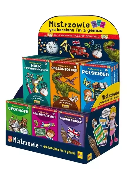 Mistrzowie z... to gra dydaktyczna w formie karcianej rozgrywki, która umożliwia udział od 2 do 4 graczy. Czas trwania jednej rozgrywki wynosi około 20 minut. Zwycięzcą zostaje ta osoba, której uda się pierwszej zebrać 5 kart za poprawne odpowiedzi na pytania. Mistrzowie z... to unikalna seria gier edukacyjnych zaprojektowana specjalnie z myślą o dzieciach! W zestawie otrzymasz mnóstwo zabawnych quizów bazujących na prostych zasadach, stworzonych na podstawie programu nauczania w szkole podstawowej. Czemu by nie spróbować? Dołącz do wyzwania z przyjaciółmi i zdobądź tytuł niepokonanego MISTRZA!