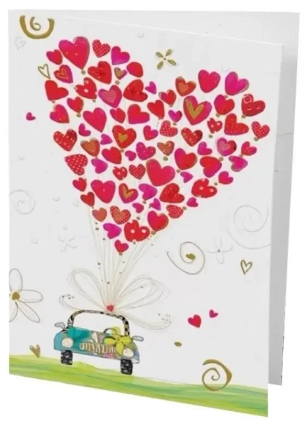 Wykonany bez żadnego tekstu wewnątrz, daje możliwość umieszczenia własnego, spersonalizowanego komunikatu. Jest to szczególnie przydatne, jeśli planujesz podarować ten karnet jako kartę okolicznościową na ślub.