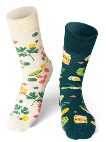 Te kolorowe skarpety są fantastycznym pomysłem na prezent dla każdego, kto ceni sobie smakowitą sałatkę jarzynową. Dla pań i panów, doskonale sprawdzają się jako codzienny, swobodny dodatek do stroju, który nawiązuje do naszych rodzimych, kulinarnych tradycji.