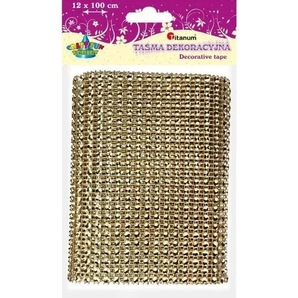 Prezentujemy złotą taśmę ozdobną z kryształkami o wymiarach 120mmx1m. Kryształki mają średnicę 4mm, co nadaje im subtelny wygląd, idealny do ozdobienia różnych przedmiotów. Ta taśma to elegancki dodatek do Twojego projektu, który doda blasku i wyrafinowania.