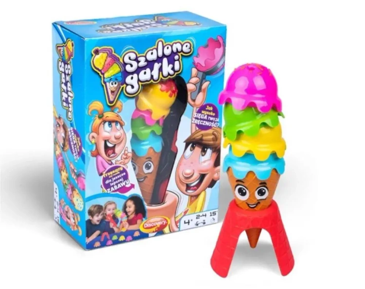 - Zadaniem graczy jest zbudowanie maksymalnie wysokiej lodowej wieży na trzęsącym się rożku, starając się naprzemiennie umieszczać gałki na sobie za pomocą specjalnej łyżki do lodów. Pamiętaj, że rożek nie daje Ci spokoju i nieustannie się trzęsie!