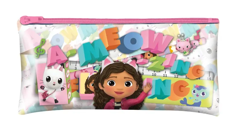 Przedstawiamy piórnik wzorowany na postaciach z popularnej serii Gabby's Dollhouse.