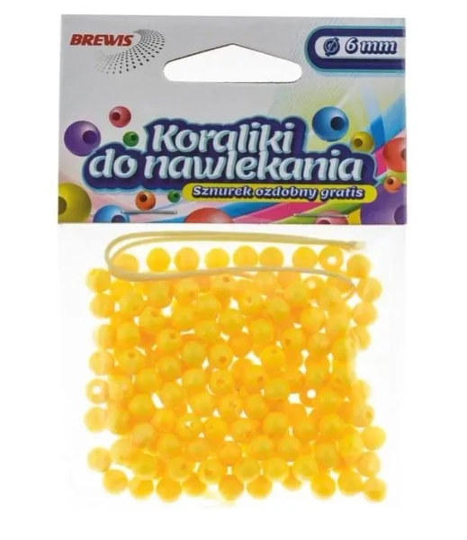 Koraliki do nawlekania z żółtym sznurkiem ozdobnym 6mm 16g