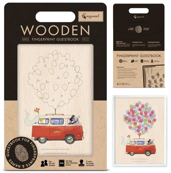 Wystarczy odkryć obraz, a następnie dotknąć palcem wybranego tuszu. Następnie, odcisk palca trafia na drewniane tło obrazu. Przy swoim odcisku można umieścić swój podpis. Pamiętaj również, aby zachęcić pozostałych gości do skorzystania z tej niecodziennej atrakcji.