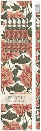 Ołówki ozdobne STPEN18 piwonie - zestaw 6 sztuk - Skona Ting