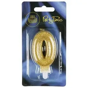 Ta luksusowa świeczka w kształcie złotej cyfry zero jest wyjątkowo efektowna dzięki swemu brokatowemu wykończeniu. Wyeksponowana na eleganckiej podstawce, dodaje wydarzeniu blasku i staje się cennym dodatkiem do każdej uroczystości. Jej wysokość wynosi 7,5 cm, co zapewnia doskonałą widoczność na torcie urodzinowym lub jubileuszowym.
