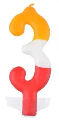 Prezentujemy Państwu urodzinową świeczkę wysubtelnizowaną w formę liczby. Wykonana została ona z wosku w trzech barwach: eleganckiego białego, żywego czerwonego i jasnego żółtego. Wysokość tej stylowej dekoracji to 10,5 cm.