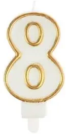 Złota świeczka na urodziny, zaprojektowana w formie cyfry 8. Ukazuje swoją niepowtarzalność poprzez oryginalny wygląd, a jej prezentacja w blisterze dodatkowo ją podkreśla. Wysokość tej świeczki wynosi 7,5 cm, co sprawia, że jest doskonałym elementem dekoracyjnym na każdym urodzinowym torcie.
