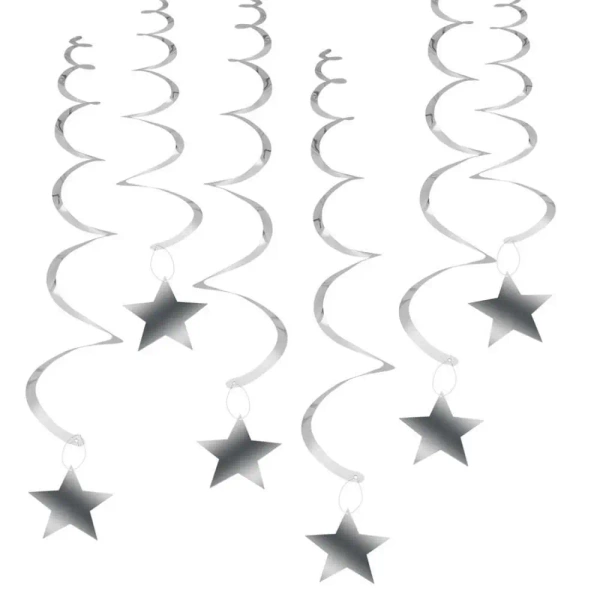 Wirujące serpentyny - gwiazdy srebrne 6szt - Arpex