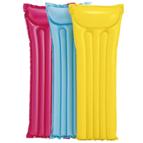Prezentowany materac do pływania dostępny jest w trzech jednolitych kolorach: niebieski, różowy i żółty.