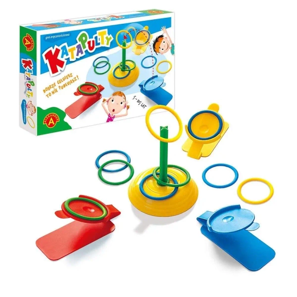 Wypróbuj, jak dobrze potrafisz strzelać z katapult za pomocą plastikowych obręczy, starając się umieścić je na sterczącym słupku. Ale pamiętaj - to nie tylko o strzał, ale także o ocenę odległości i dobór siły naprężenia katapulty. To doskonały sposób na trening cierpliwości i koordynacji ruchów.Co znajdzie się w zestawie?