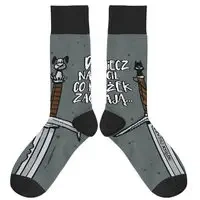 Dwa miecze przede wszystkim symbolizują dwa bardzo ważne przesłania dla miłośników książek. Pierwszy miecz ostrzega tych, którzy nie zwracają pożyczonych książek, natomiast drugi poucza o konsekwencjach zginania kartek. Jeżeli zdarza Ci się użyczać swoje ulubione egzemplarze ze swego księgozbioru, to noszenie takich skarpetek będzie idealnym przekazem dla Twoich znajomych. Niech wiedzą, jak ważne jest szanowanie książek!Skarpetki z przesłaniem