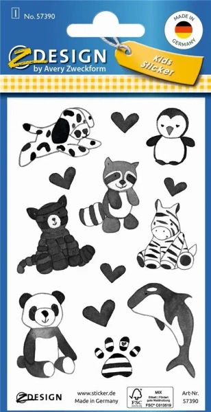 Brokatowe naklejki - Czarno białe zwierzątka - Zdesign