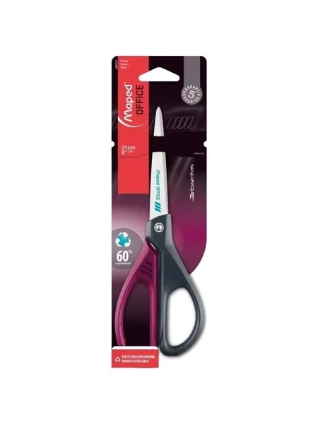 - Nożyczki te cechuje asymetryczny uchwyt oraz uchwyty w 60% wykonane z surowców odzyskanych z recyklingu, co przyczynia się do dbałości o środowisko.