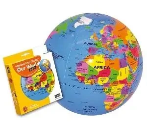 Piłka globus jest wykonana z materiału do nadmuchiwania, dzięki czemu można ją łatwo przechować. Zabawka możemy ją rozwinąć i nadmuchać w dowolnym momencie. Należy jednak pamiętać, że opakowanie nie zawiera pompki do nadmuchiwanie globusu, jest ona potrzebna do pełnej zabawy.