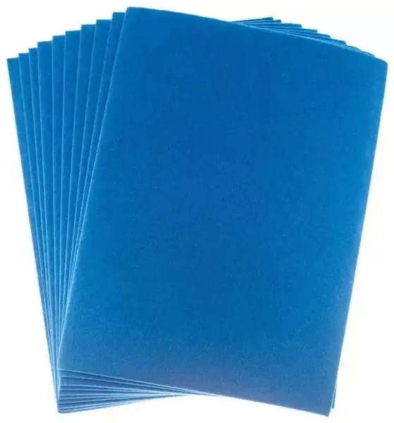 Zestaw 10 arkuszy niebieskiego filcu o wymiarach A4. Grubość każdego arkusza wynosi 2 mm, co sprawia, że są one wytrzymałe, ale jednocześnie elastyczne i łatwe do przycinania oraz formowania. Idealne do wykorzystania w projektach rękodzielniczych, takich jak szycie ozdób, figur czy zabawek oraz pracach dekoracyjnych i plastycznych.