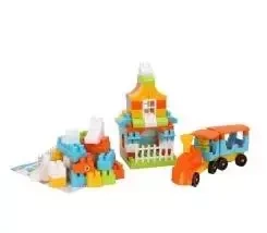 W skład zestawu wchodzi mnóstwo kolorowych elementów o różnych kształtach, które można łączyć ze sobą w różnorodne konstrukcje. W ten sposób, dzieci mogą stworzyć niepowtarzalne budowle, przyczyniając się do rozwijania własnej wyobraźni i pomysłowości.