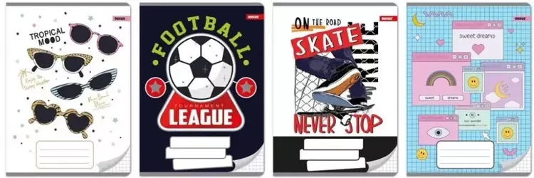 Każdy zeszyt zawiera 32 kartki o gramaturze 70 g/m2, na których dominuje linia. Odznaczają się estetycznym i atrakcyjnym wykończeniem. Wyjątkowym akcentem jest metalizowane ukończenie i modna grafika na okładce.