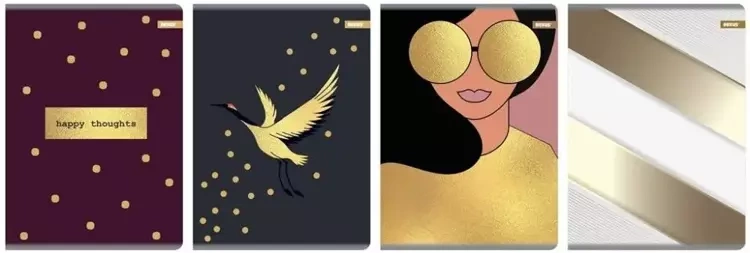 Zeszyty te wyróżniają się szykownym wykończeniem. Metalizowana okładka zdobiona jest nowoczesnym wzorem, dzięki czemu są nie tylko funkcjonalne, ale również stanowią stylowy dodatek do Twojego biurka czy torby.