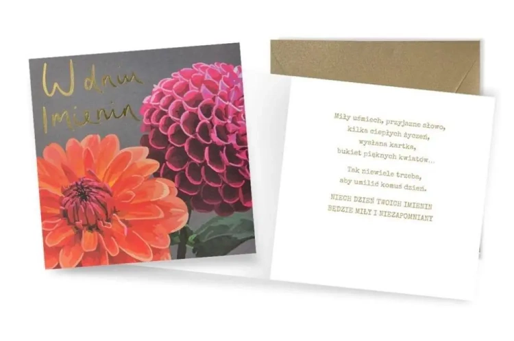 Wymiary i dodatkiKartka po złożeniu ma wymiary 15.5 x 15.5 cm, dzięki czemu jest kompaktowa, a jednocześnie oferuje wystarczającą przestrzeń na umieszczenie własnych życzeń i dedykacji. W środku znajduje się miejsce na indywidualną wiadomość dla obdarowanego.