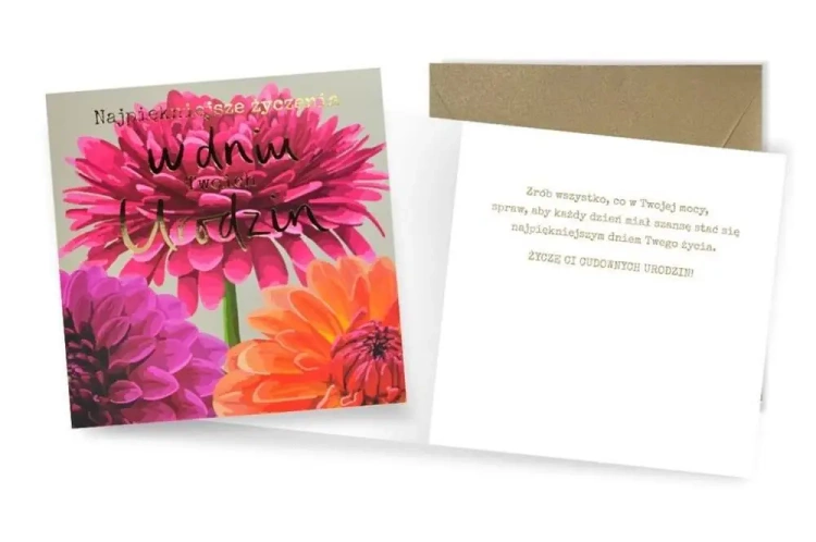 Czy mówiliśmy już, że ta kartka jest wręcz stworzona na urodziny? Głębokie życzenia w środku i piękny design zewnętrzny sprawiają, że jest to prezent, który zrobi niesamowite wrażenie na jubilacie.