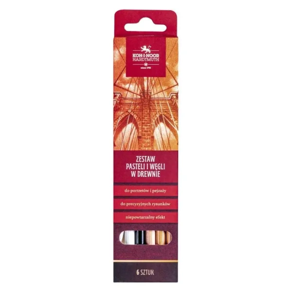 Pastele suche i węgle w drewnie + rozcieracz 6szt. - Koh-I-Noor