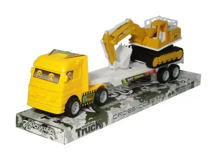 Opis produktu: Ciężarówka budowlana z przyczepą i koparką