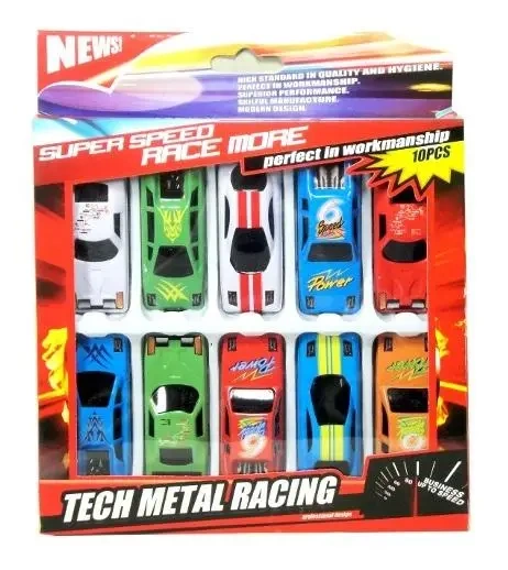 Prezentujemy kolorowy komplet 10 aut sportowych, które doskonale nadają się do kreowania emocjonujących wyścigów prosto w domowym salonie. To świetna rozrywka nie tylko dla dzieci, ale także dla dorosłych miłośników motoryzacji. Każdy pojazd wyróżnia się odmiennym kolorem oraz unikalnymi deseniami na masce i dachu. Całość zestawu spakowana jest w atrakcyjne kartonowe opakowanie z oknem, które pozwala podejrzeć zawartość bez konieczności otwierania pudełka. Zabawka dedykowana jest dzieciom, które skończyły 3 lata.