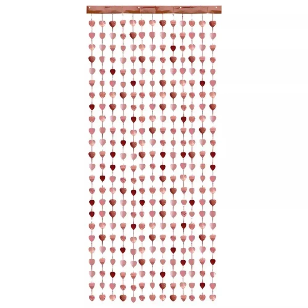 Ręcznie wykonana kurtyna ozdobna - Serca to idealny dodatek do dekoracji wnętrza. Wykonana z wysokiej jakości folii w modnym kolorze różowego złota, wprowadza do każdego pomieszczenia unikalny, elegancki wygląd.