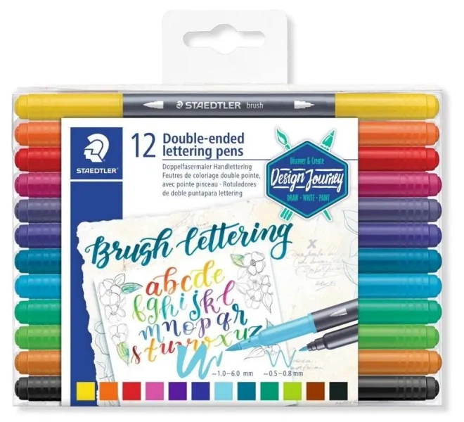 Flamastry dwustronne do letteringu 12 kolorów - Staedtler