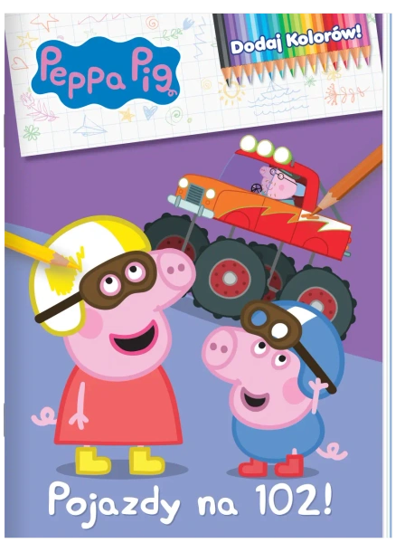 Książka "Pojazdy na 102" z serii "Świnka Peppa - Dodaj kolorów"