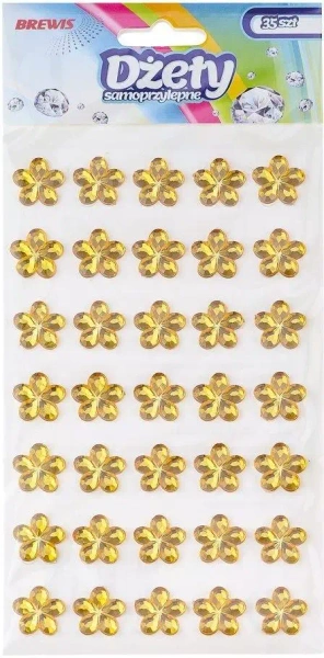 Dżety samoprzylepne kwiatki złote 35szt - Brewis