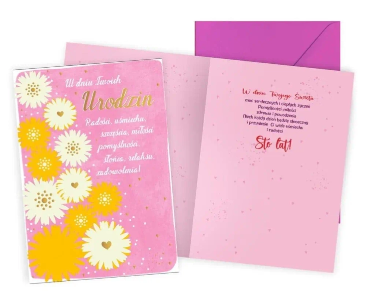 Mimo niewielkiego rozmiaru, kartki z serii Passion Premium potrafią zaskoczyć swoją rozbudowaną tematyką. Bo przecież nie tylko zewnątrz jest piękne! Otwierając kartkę, odbiorca znajdzie wewnątrz starannie dobrane kolorowe grafiki i wyjątkowe życzenia. Dodatkowo, do kartki dołączona jest koperta w dopasowanym kolorze, co podkreśla całościowy charakter prezentu.