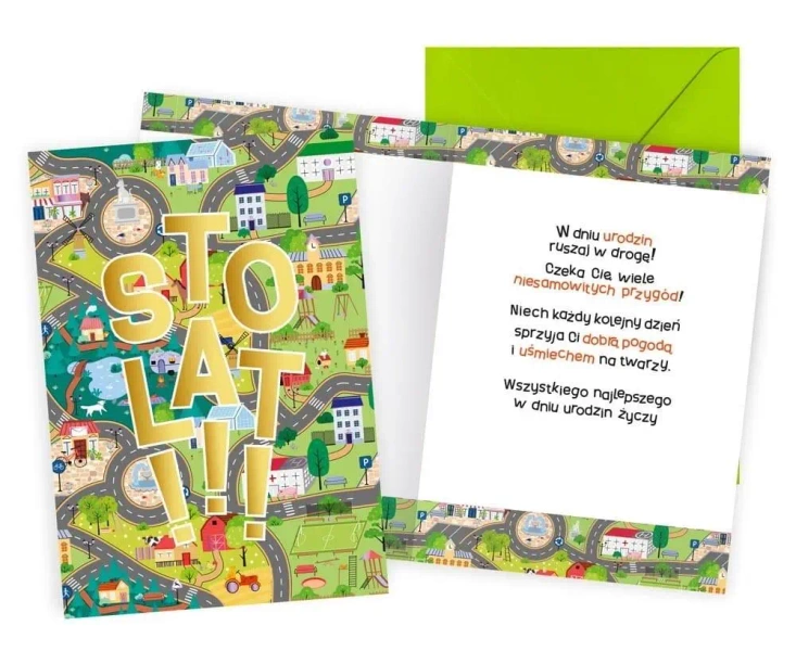 Szczególne cechy produktu to: format B6 (16,6 x 11,7 cm po złożeniu), koperta dostosowana kolorystycznie do kartki, zastosowanie co najmniej dwóch rodzajów zdobień (znajdziesz tu m.in. folię złotą, srebrną lub perłową, brokat, tłoczenia), kolorowe wnętrze z życzeniami. Zostały one stworzone, aby przekazać osobie obdarowanej jak najwięcej radości.