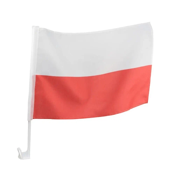Prezentowana flaga samochodowa wyposażona jest w plastikowy uchwyt zapewniający stabilne zawieszenie na pojeździe. Wymiary flagi to 31x45 cm, natomiast długość patyczka wynosi 44 cm. Idealna do wyrażenia swojej przynależności narodowej czy dumy z drużyny sportowej podczas podróży samochodem.