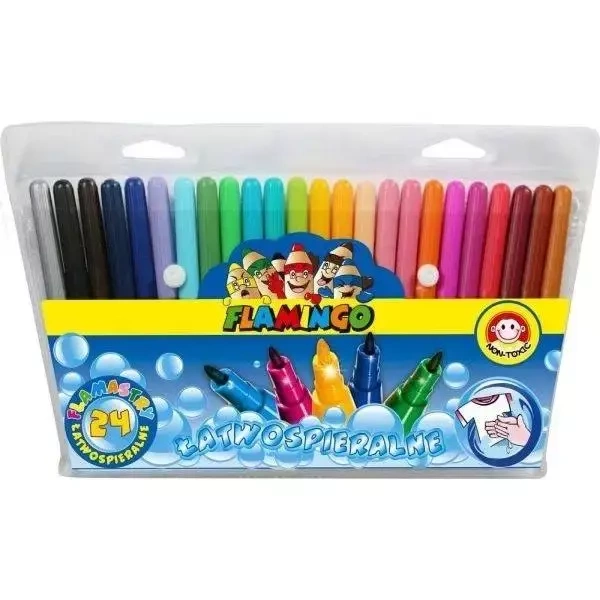 Ożyw swoją kreatywność dzięki kompletowi 24 kolorowych flamastrem marki Titanum, o okrągłym kształcie. Każdym ruchem końcówki na papierze uwalniasz intensywne barwy, które doskonale zaznaczają się na powierzchni. Łatwość zmywania pozwala uniknąć nieustających walk ze skutkami niekontrolowanej pracy małych artystów. Bez względu na to, czy barwa trafi na ubranie, meble czy skórę, łatwo pozbędziesz się niechcianych śladów bez zbędnego pocierania. Komplet flamastrem zapakowany jest w przyjazne dla użytkownika etui, które pozwoli utrzymać porządek oraz łatwo zabrać zestaw w dowolne miejsce. Ciesz się nieskończonymi możliwościami wyrażania swojej kreatywności, bez obaw o zniszczenie otoczenia.EAN: 5907437653401