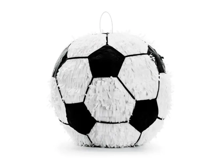 Przedstawiamy piniatę w formie piłki nożnej, zaprojektowaną z białym tłem i szczegółami w kolorze czarnym. Ta piniata jest idealna do wypełnienia różnego rodzaju prezentami. Jej rozmiary to ok. 35 x 35 x 35 cm.