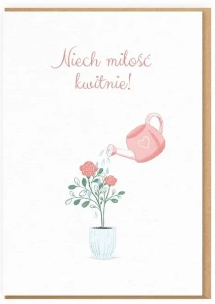 Pielęgnowanie miłości to jak troska o najdelikatniejszą roślinę w ogrodzie. Dlatego kartka "Niech miłość kwitnie", powstała w Polsce. To efekt naszej miłości do polskiej kultury i piękna języka ojczystego. Podaruj tę kartkę parze, w której miłość kwitnie niezmiennie.